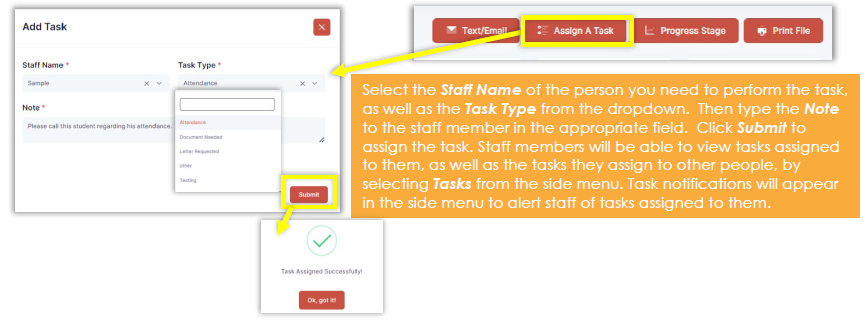 ASSIGNING A TASK TO A STAFF MEMBER REGARDING A STUDENT: